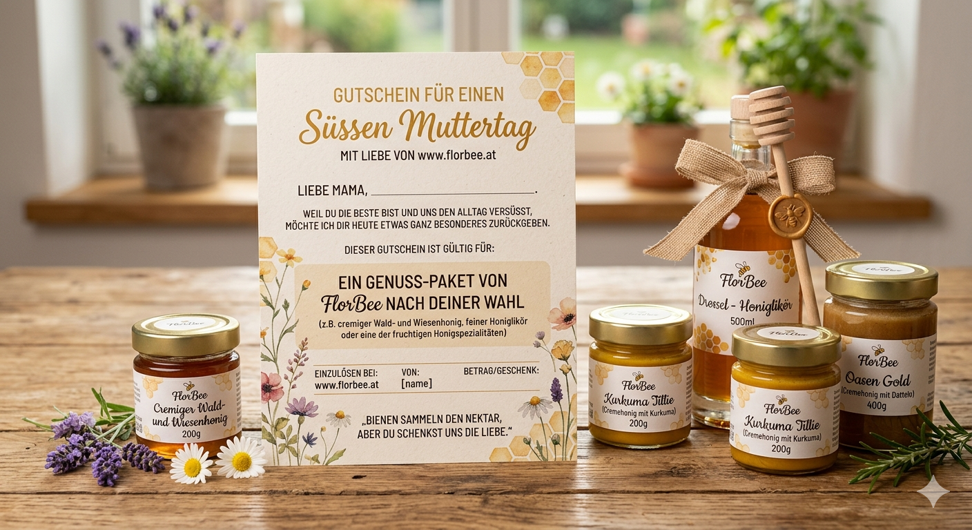 Ein Genuss-Paket von FlorBee nach deiner Wahl, falls du direkt auf der Website bestellen möchtest, kannst du die Produkte auch direkt zu ihr nach Hause liefern lassen. Gib dazu einfach ihre Adresse als Lieferadresse an!